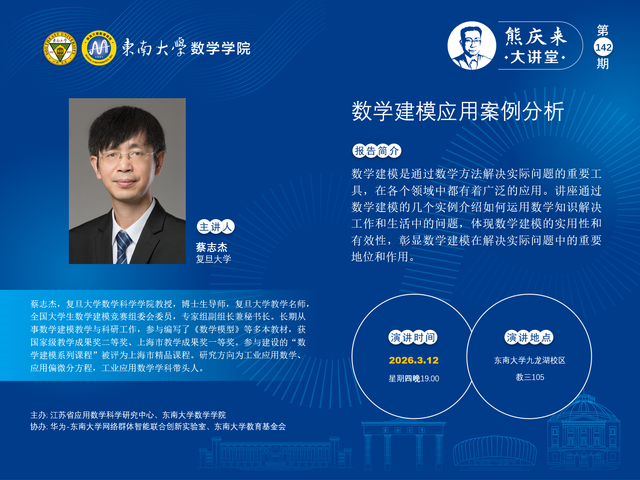 熊庆来大讲堂142期:2026.03.12- 数学建模应用案例分析-蔡志杰-复旦大学