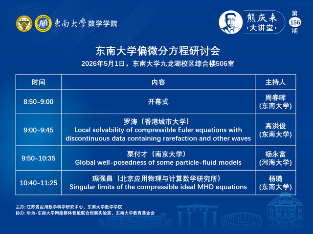 熊庆来大讲堂156期:2026.05.01 - 色情平台 偏微分方程研讨会